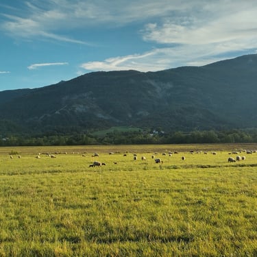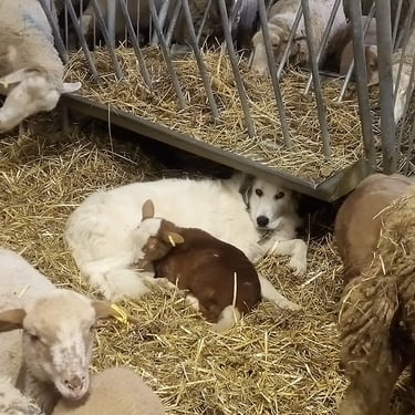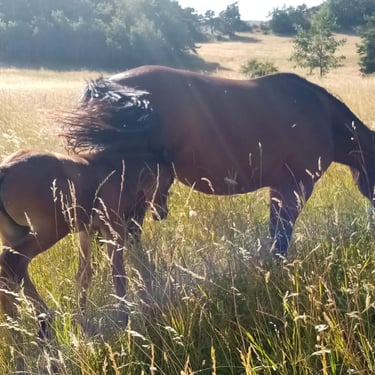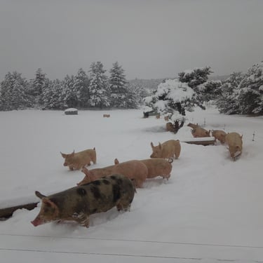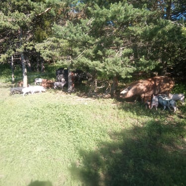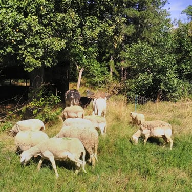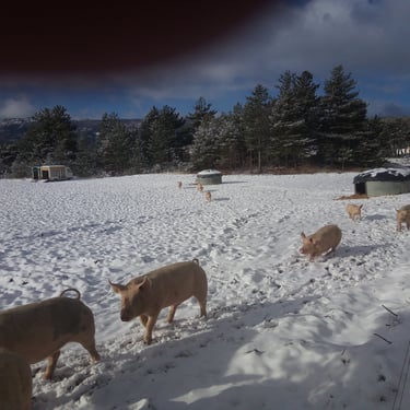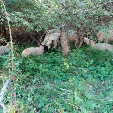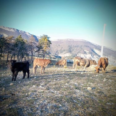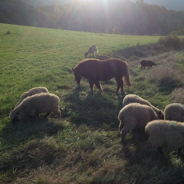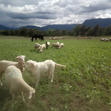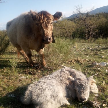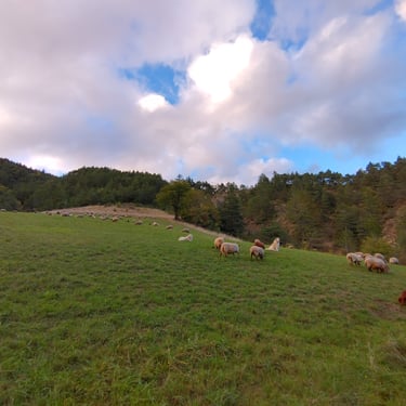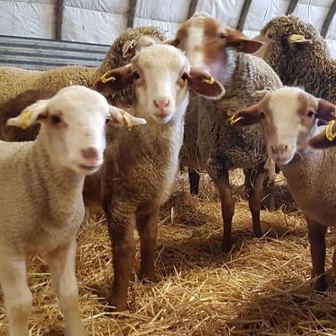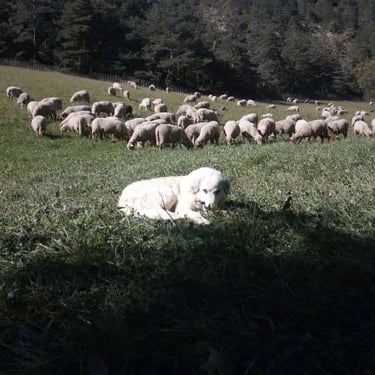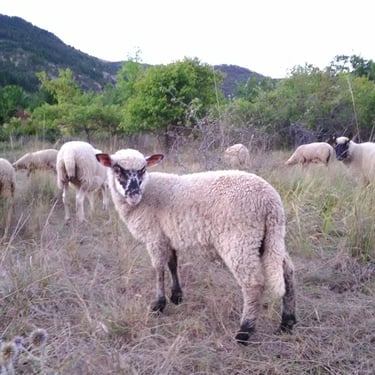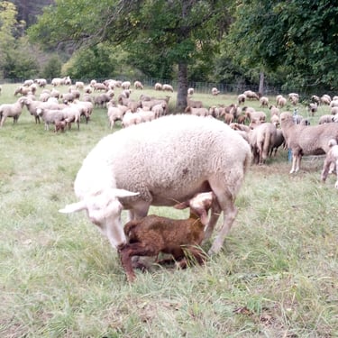 Notre troupeau d’une centaine de mères vit principalement au grand air. Mais l’hiver peut être rude dans nos contrées, nous les rentrons donc en bergerie pour les périodes les plus difficiles (de décembre jusqu’au début mars). Nous élevons principalement des brebis de race mourerous, race rustique bien adaptée à la rudesse du territoire, avec des hivers froids et des étés chauds. Nourris uniquement au foin de montagne et a l’herbe, les agneaux vont avoir une croissance lente contrairement aux agneaux de bergerie complémentés avec des concentrés. Comme pour le porc, l’agneau à croissance lente donnera une viande bien meilleure qu’un agneau traditionnel. Elle sera plus fine et bien moins forte.