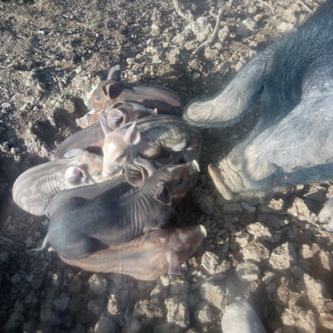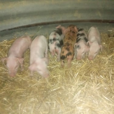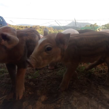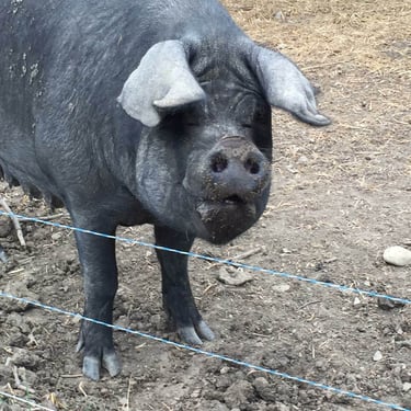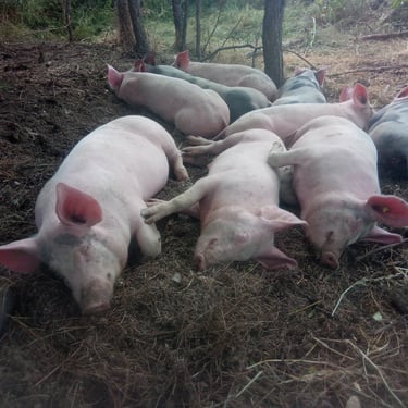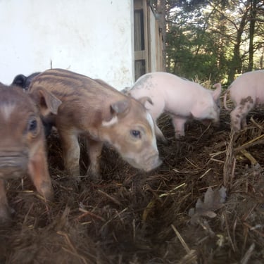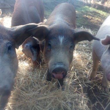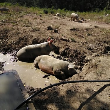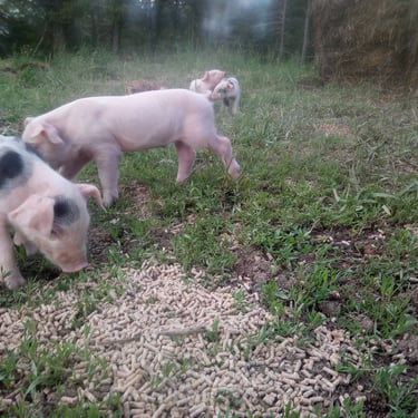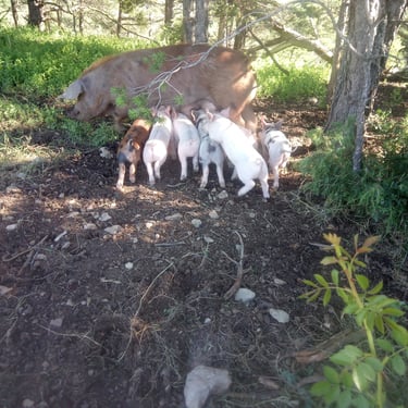 Nous faisons naitre des cochons dits ‘’semi rustiques’’, c’est-à-dire que nous croisons des truies de races anciennes avec des verrats de races plus modernes. Cela nous permet d’allier la qualité de la viande des animaux anciens avec des rendements proches des races modernes.