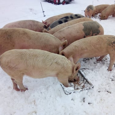 Les porcs sont engraissés de 8 à 14 mois (6 mois maximum en élevage industriel) pour produire du porc dit ‘’lourd’’, c’est-à-dire des carcasses pesant de 120 à 180Kg. L’élevage en plein air, la rusticité et la maturité des animaux confèrent alors une qualité de viande et de gras exceptionnelle.