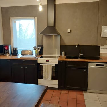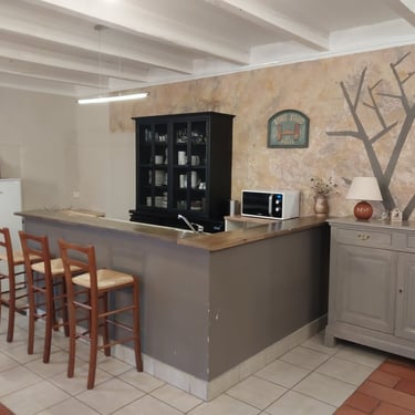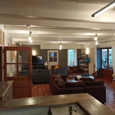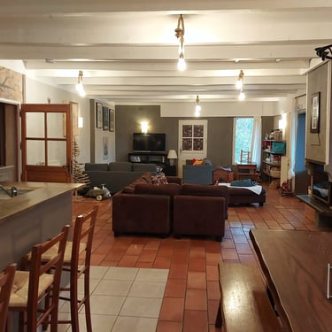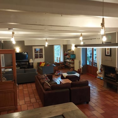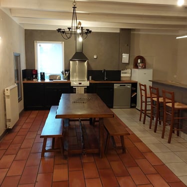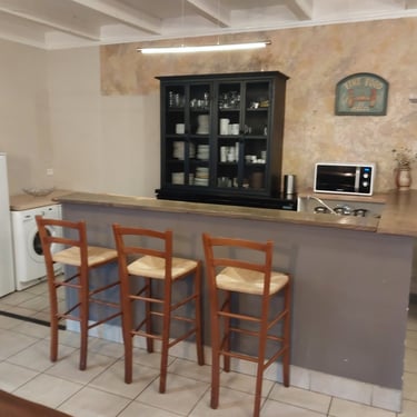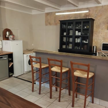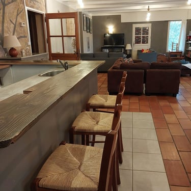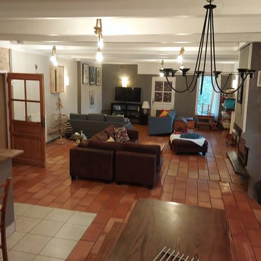 Le séjour est équipé d'une cuisine intégrée et d’un bar, ouverts sur un espace repas et un coin salon avec cheminée (bois fourni), piano, espace jeux enfants et bibliothèque. Vous disposerez de deux barbecues, d’un lave-vaisselle, lave-linge, deux réfrigérateurs, congélateur, sèche-linge, TV, connexion Internet, grand écran et lecteur DVD. Nous avons également des lits bébé et chaises hautes.