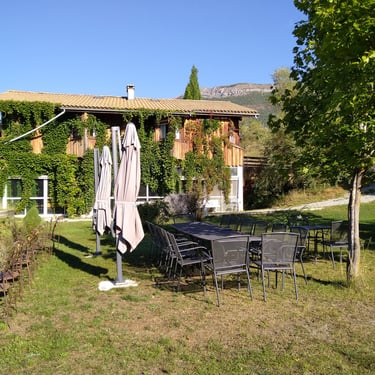 Le gîte du Chevalet est situé dans notre ferme, dans le territoire du Haut-Buëch, à 850m d’altitude, en pleine nature et au cœur des montagnes. Ce grand gîte de 300m2 est prévu pour 15 personnes, avec ses 5 chambres, et dispose d'un grand séjour de 90 m² ouvrant sur une véranda orientée plein sud et donnant sur un grand terrain privatif équipé d'une piscine.